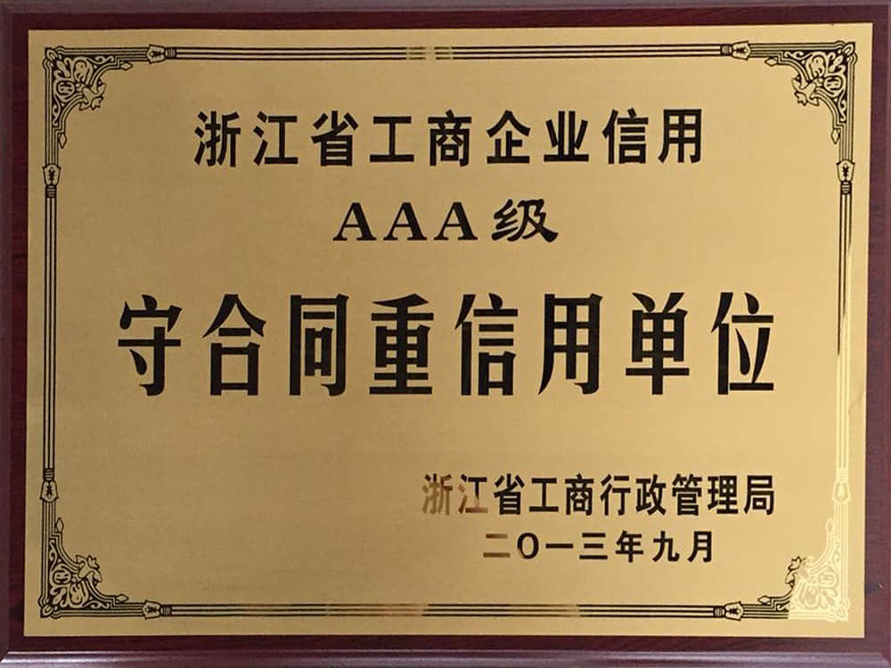 • 2013浙江省工商企業信用AAA級守合同重信用企業